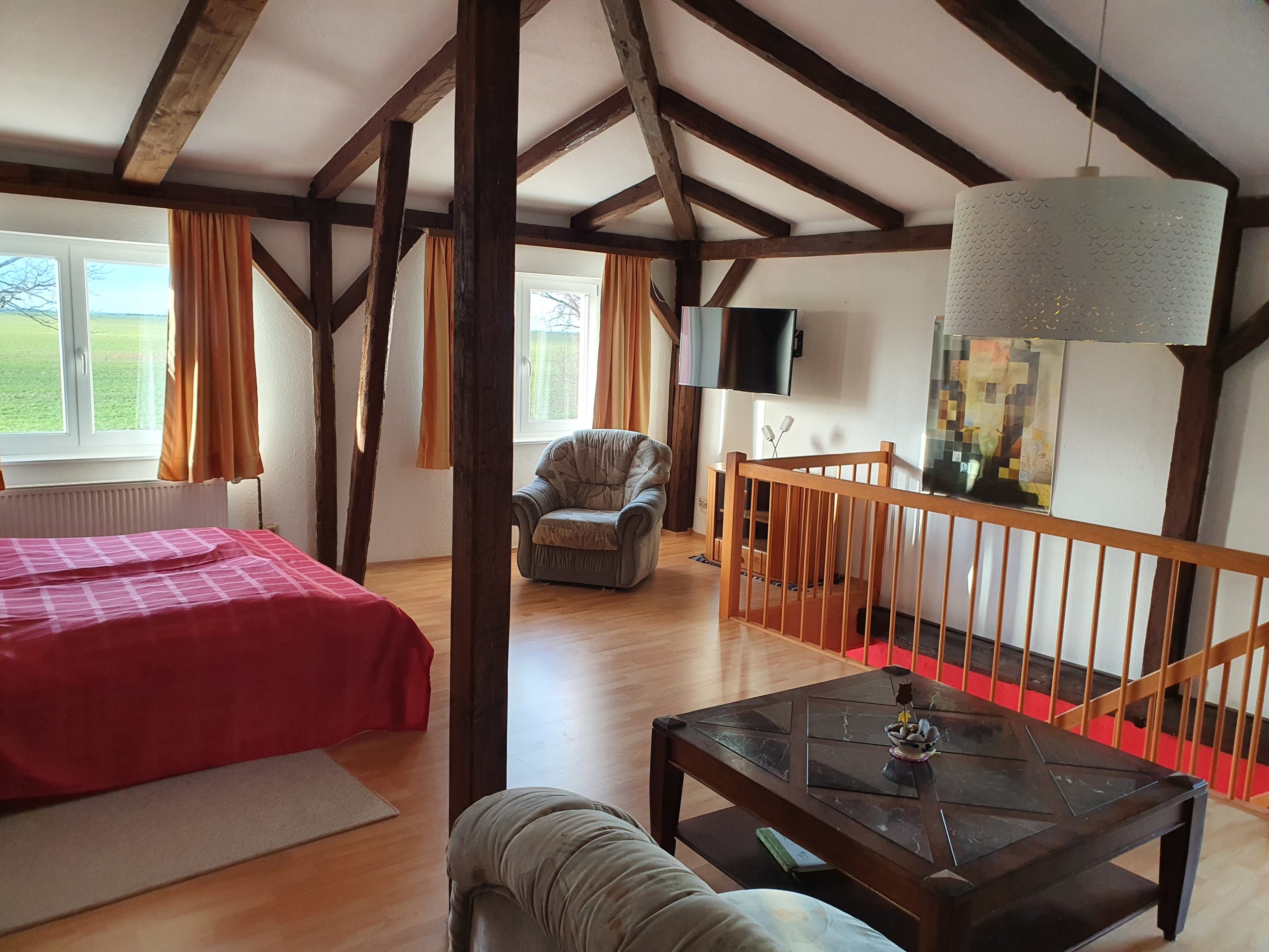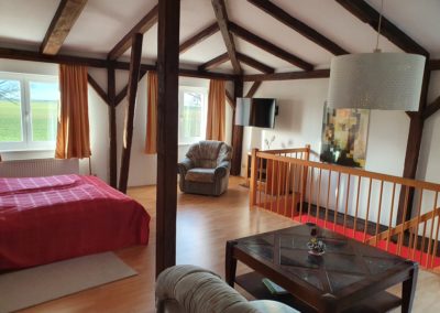 Die Ferienwohnung 2 ist 50 m² groß und ist ausgestattet für 4 Personen. Eine Aufbettung ist nicht möglich.